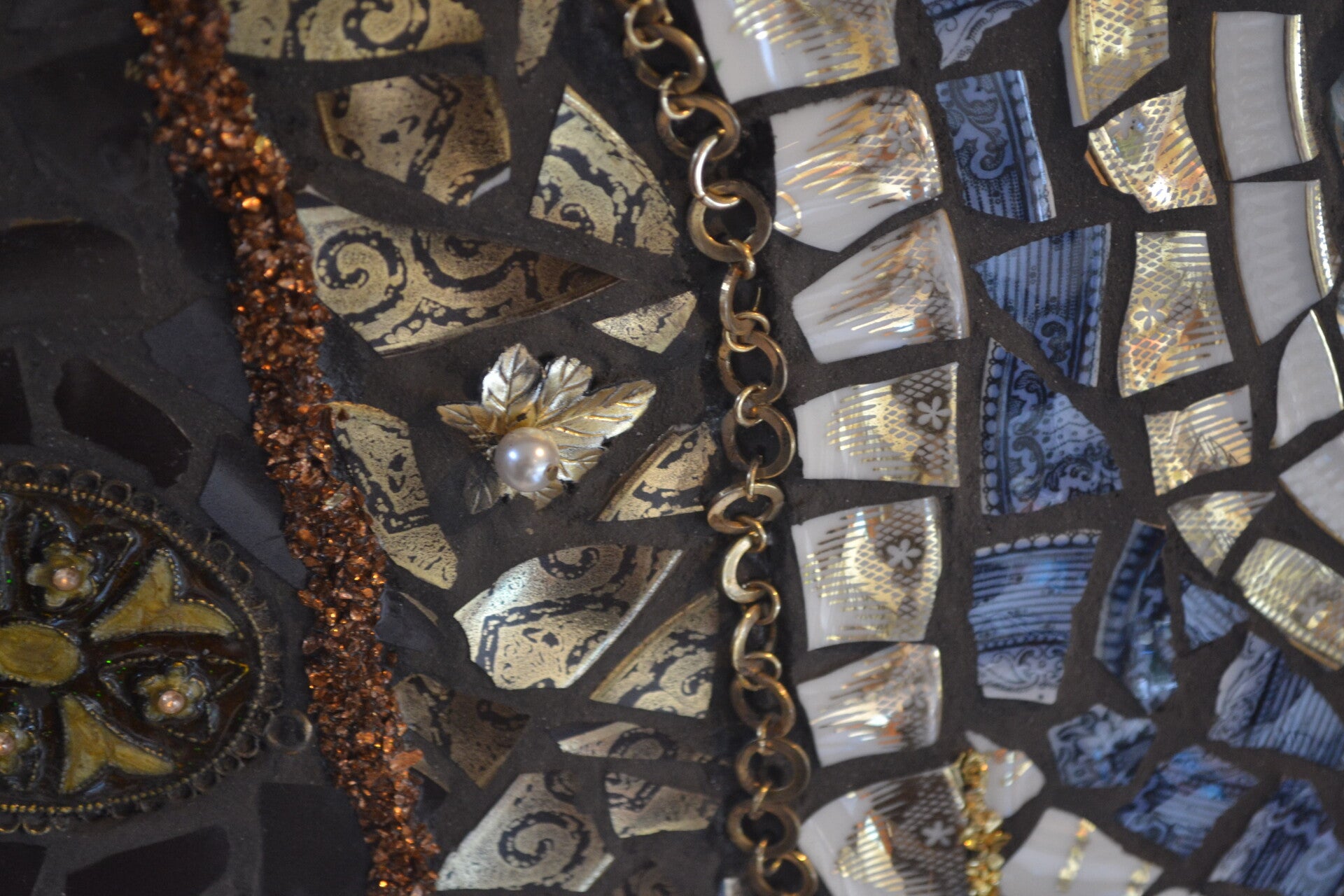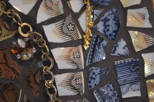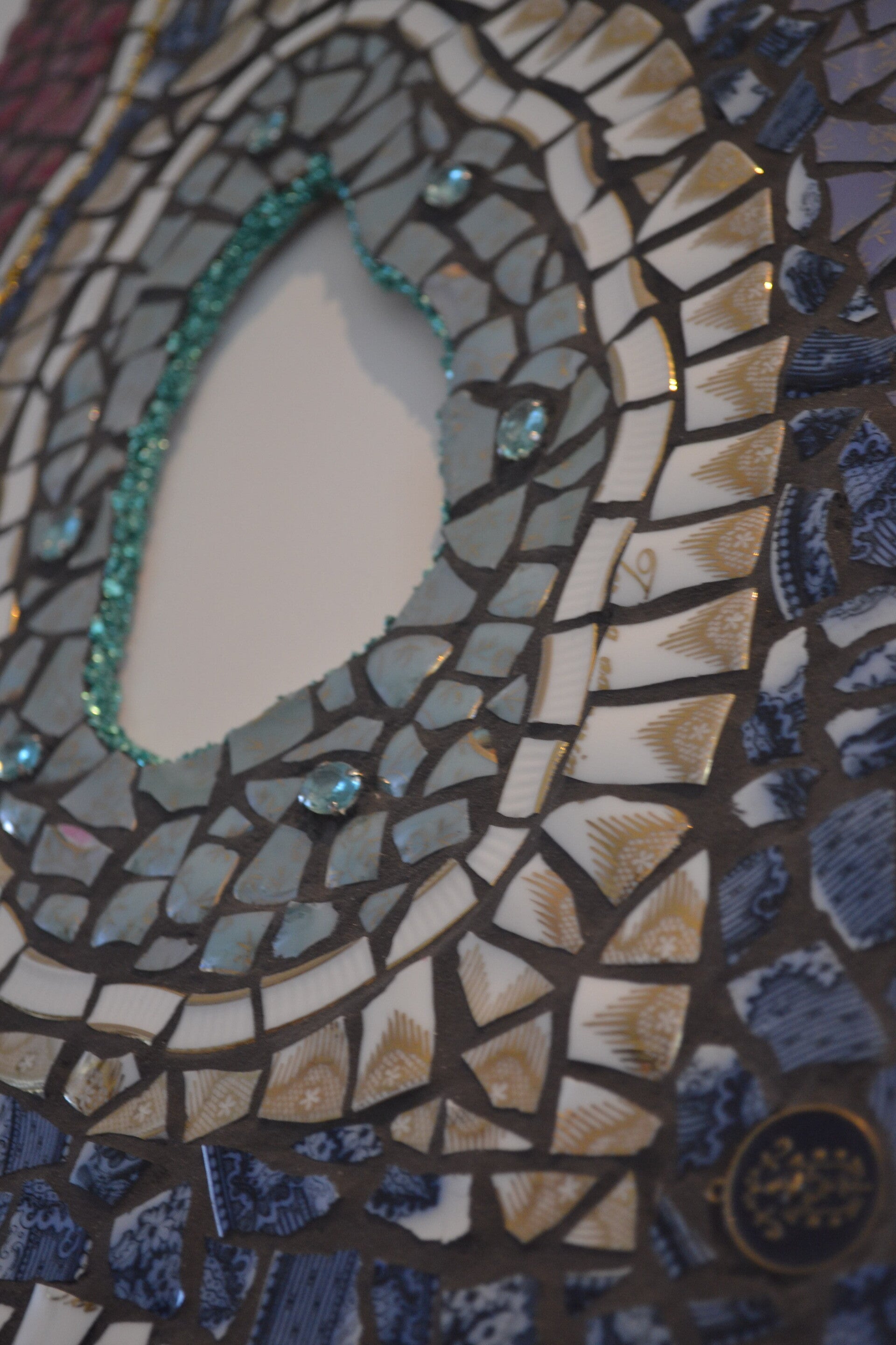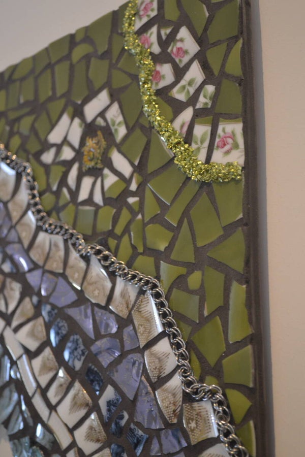Dit kunstwerk, gebaseerd op een geode, is gemaakt van 2e hands materialen. Kopjes en schotels in onverwachte kleuren zijn gebroken en daarna samengevoegd met sieraden op een houten plaat, zoals je een geode kan vinden door het breken van een steen. Het symboliseert een 2e kans en onverwacht gevonden schoonheid.